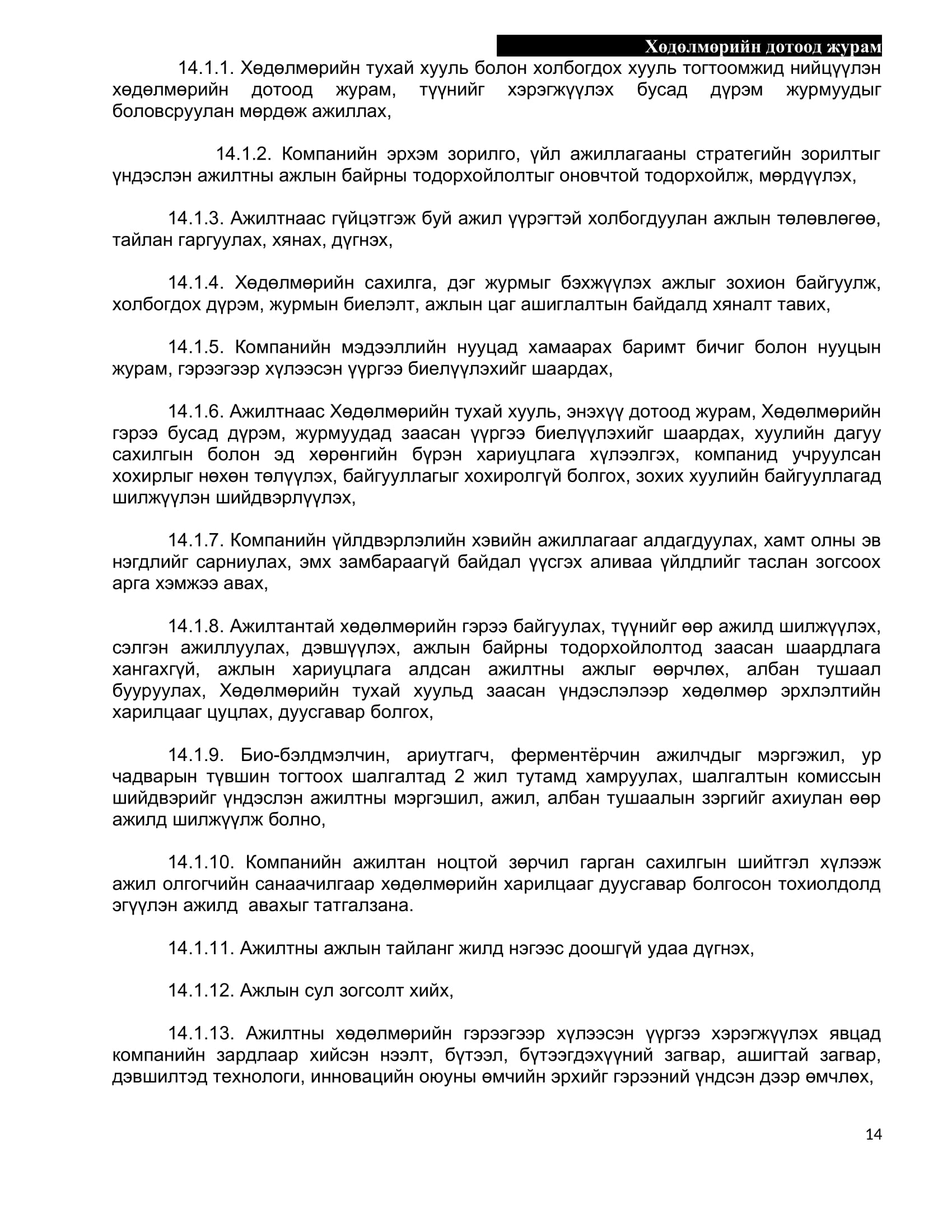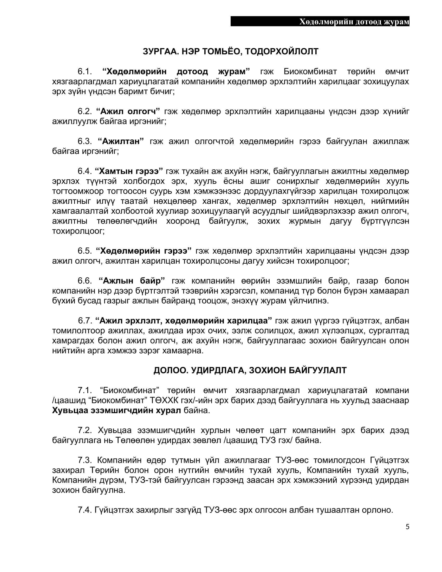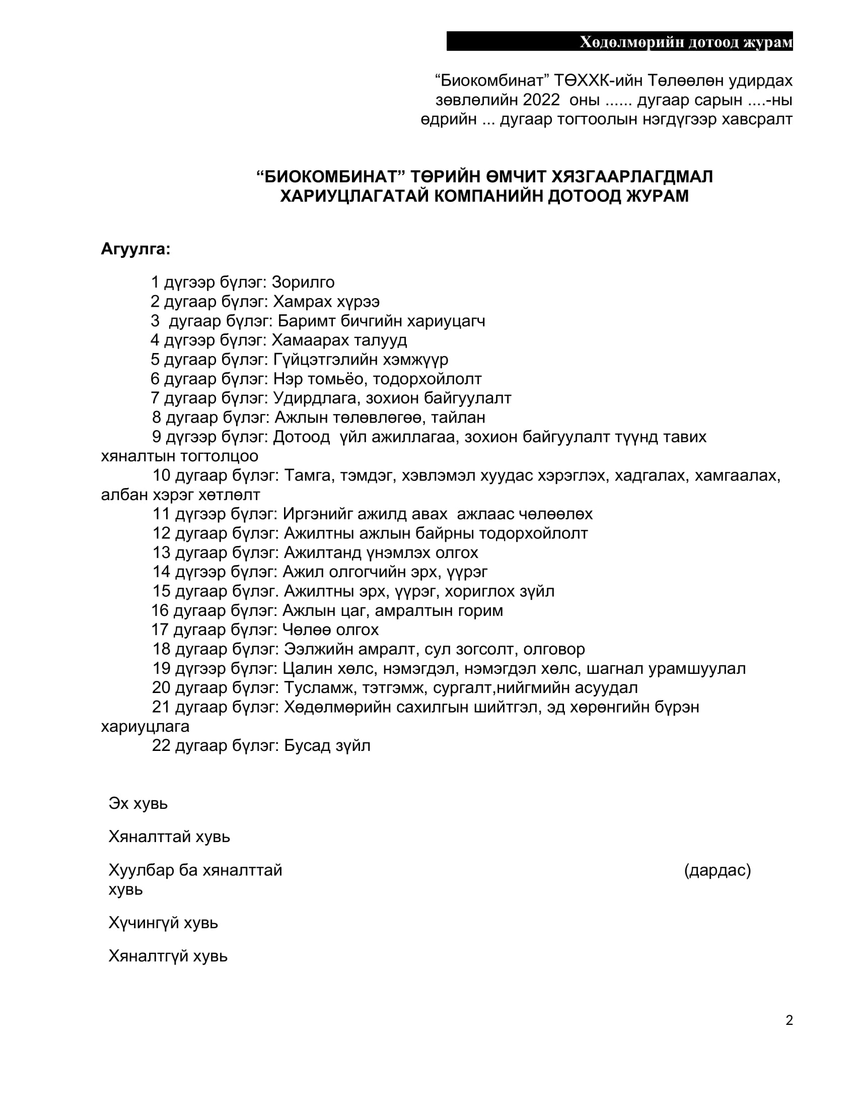 БИОКОМБИНАТ ТӨРИЙН ӨМЧИТ ХЯЗГААРЛАГДМАЛ ХАРИУЦЛАГАТАЙ КОМПАНИЙН Дотоод журам