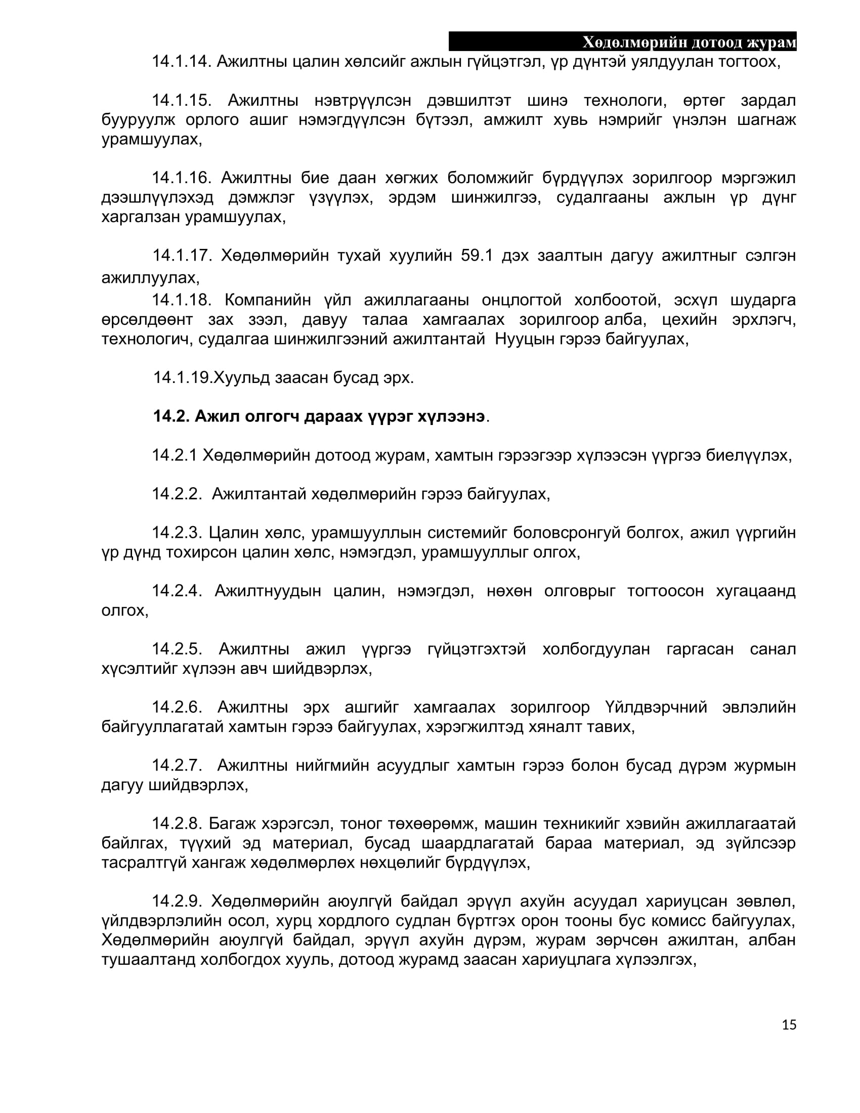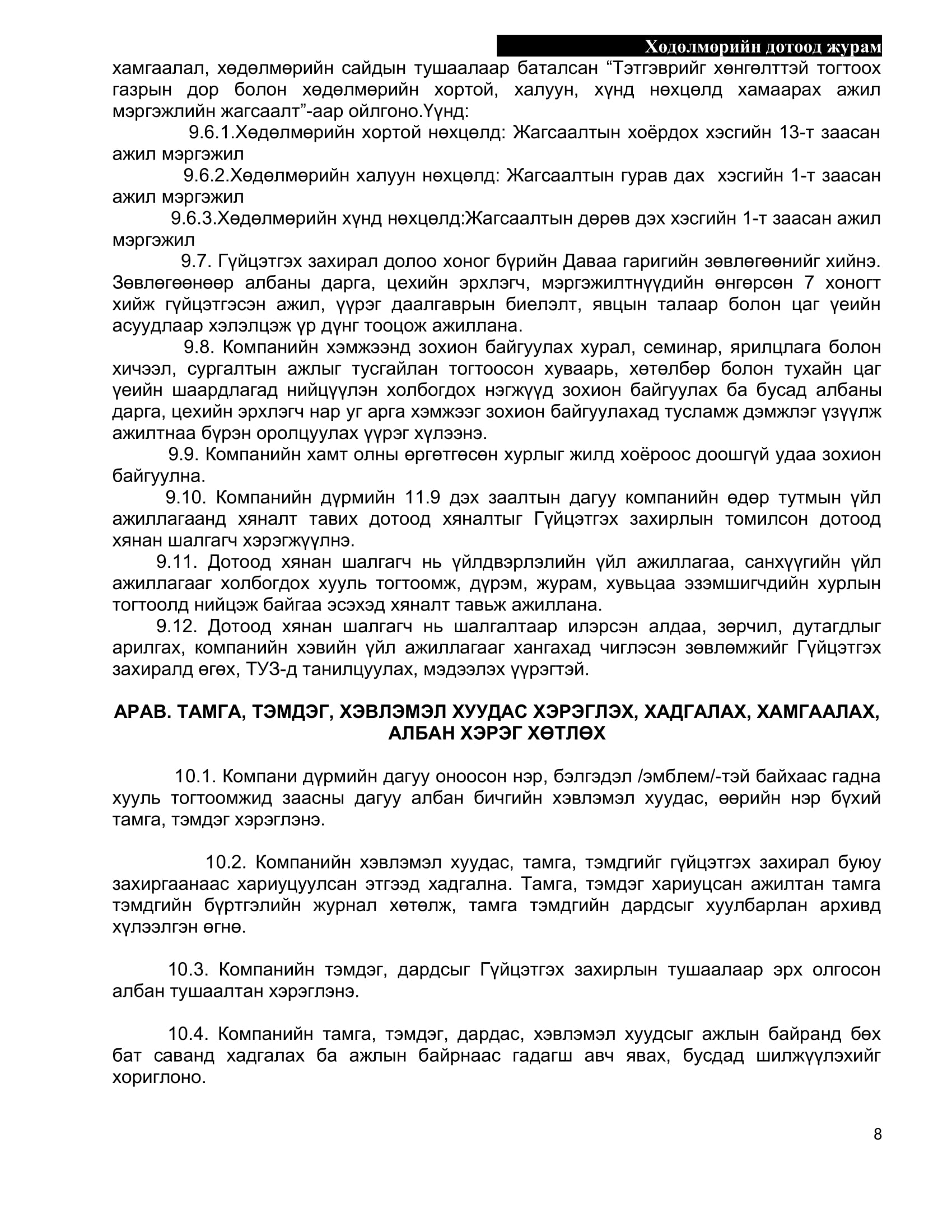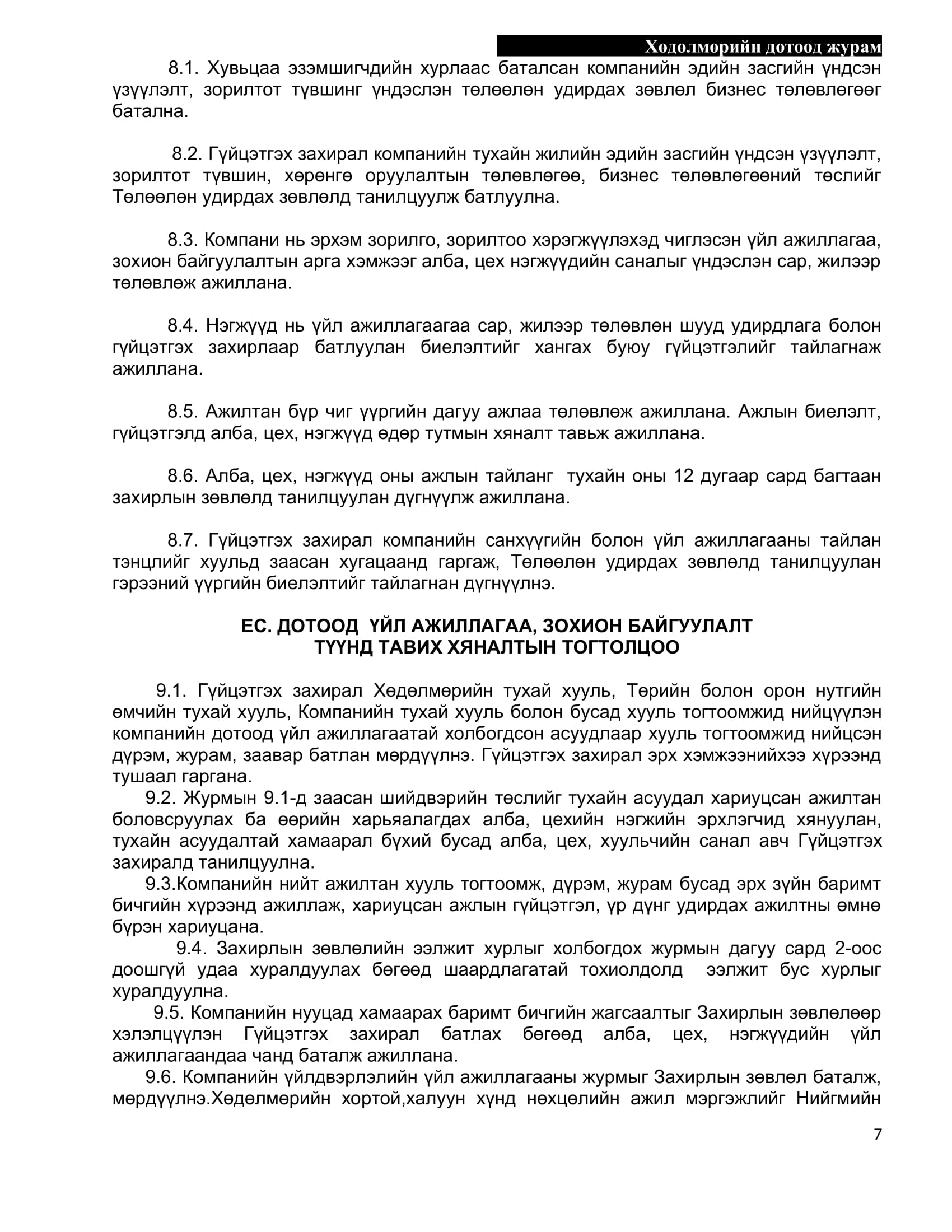 БИОКОМБИНАТ ТӨРИЙН ӨМЧИТ ХЯЗГААРЛАГДМАЛ ХАРИУЦЛАГАТАЙ КОМПАНИЙН Дотоод журам